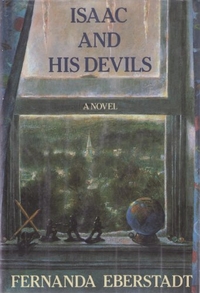 New York's avant-garde art world in the free-spending late 1980s is the background for Eberstadt's sharp-witted third novel, in which the protagonist of Isaac and His Devils finds his metier as an artist. Much in the way The Bonfire of the Vanities defined a certain time and place in New York's social history, this novel dissects the art scene with the intelligence of an insider who knows it well and the elan of a writer who intends to spill its dirty secrets. Isaac Hooker, still an almost comically naive country bumpkin despite his short stay at Harvard, endures desperate months as a homeless menial laborer in lower Manhattan until he discovers his genius as a painter and is discovered in turn by the Geblers, a rich, mutually incompatible couple who are patrons of the arts. Mrs. Gebler's inheritance is the basis of the Aurora Foundation, and they are part of the crowd that drops money and gossip at gallery openings, experimental theater and Park Avenue parties. Eberstadt's gimlet vision doesn't miss a thing- from momentarily hot painters in designer overalls to pretentious gallery owners stepping out of limousines. She convincingly describes the process by which Isaac discovers his biblical subject (his huge, violent, rankly sexual paintings depict the orgiastic minglings ""when the sons of God came into the daughters of man""), and his artistic credo. With amazing range, she sketches New York's neighborhoods, from the Geblers' posh digs on the Upper West Side and their country house in Long Island to storefront SoHo galleries and the projects on Avenue C. But while Isaac's odyssey is a strikingly contemporary Portrait of the Artist as a Young Man, Eberstadt spreads her palette too thin. She follows too many minor characters, with the result that the novel's texture is deep but its narrative drive is sluggish. Even more problematic is her attitude toward the Geblers, from whom she keeps an ironic distance. Eberstadt's unconcealed dislike of these pretentious, self-deluded people and their acquaintances distances the reader too. Thus, despite its teeming social and cultural panorama, the sour tone, in the end, defeats cleverness and wit. (Mar.)